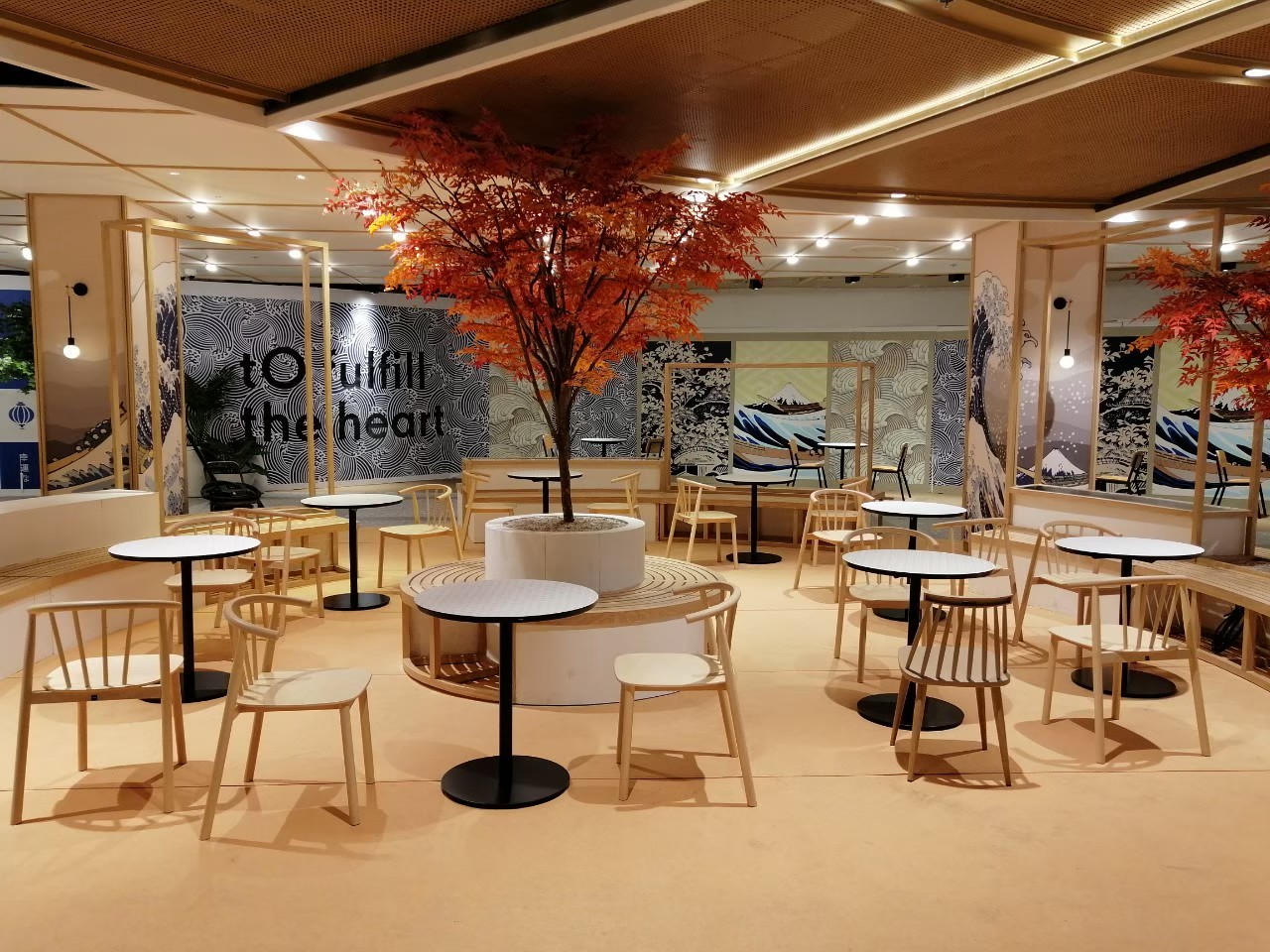 Central Food Park at Central World. Decorate in Japanese sense. Making the area attractive and gain people who walking through by a clean look with simple furniture.